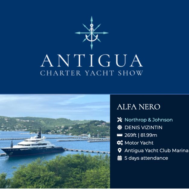 Alfa Nero is promoted to appear at the Antigua Charter Yacht Show from 4-9 December 2024 before cruising the Caribbean and the Bahamas in the new year.