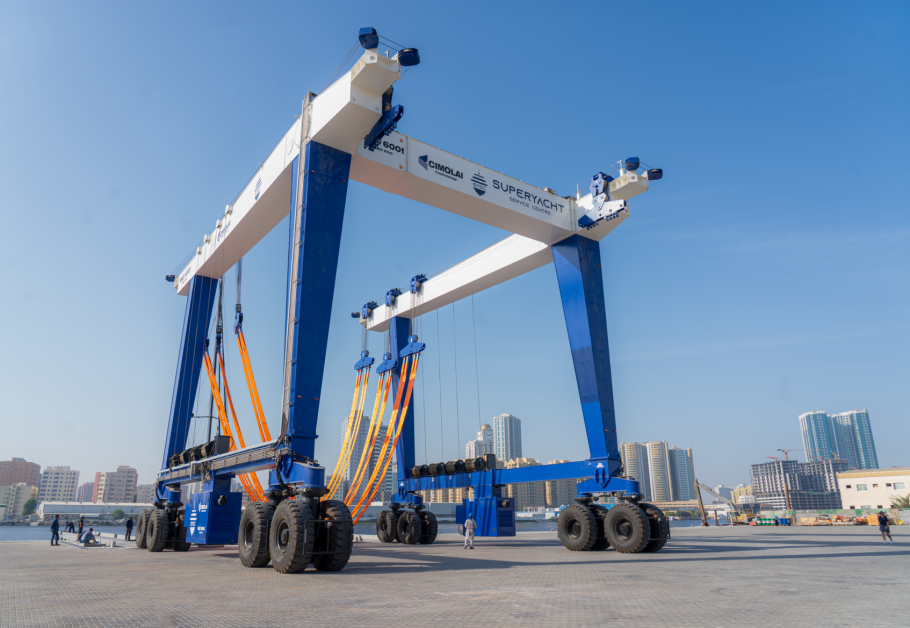 The 10,000sqm facility, located in Ajman, UAE, saw a significant development this week, with the successful certification load test of the Cimplai 600-ton travel lift. The lift allows for the handling of yachts up to 60 meters in length, backed by a second 75-ton lift for smaller vessels and day-to-day service requirements.