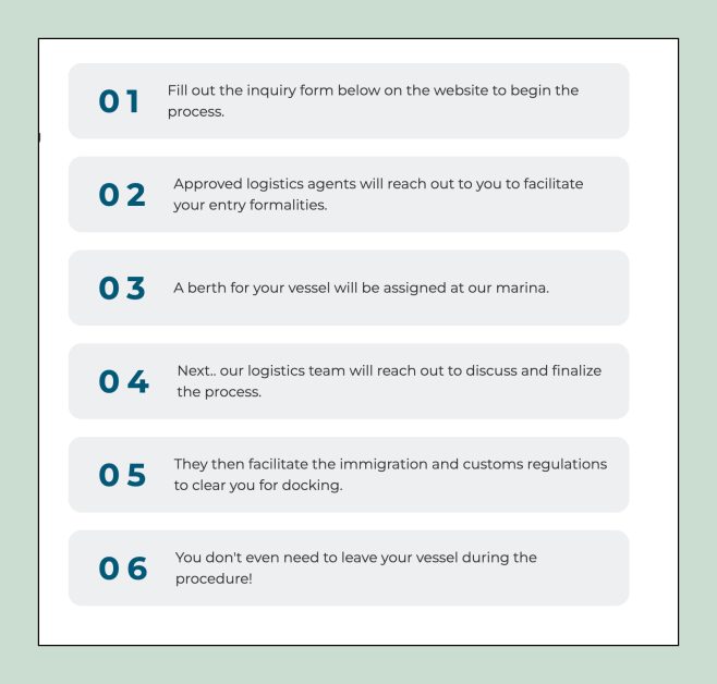 Minakom, created for private and non-cruise vessels, can be accessed through Old Doha Port’s website. Tourists are required to submit a digital inquiry form before connecting with a local agent who will handle the formalities with government officials.